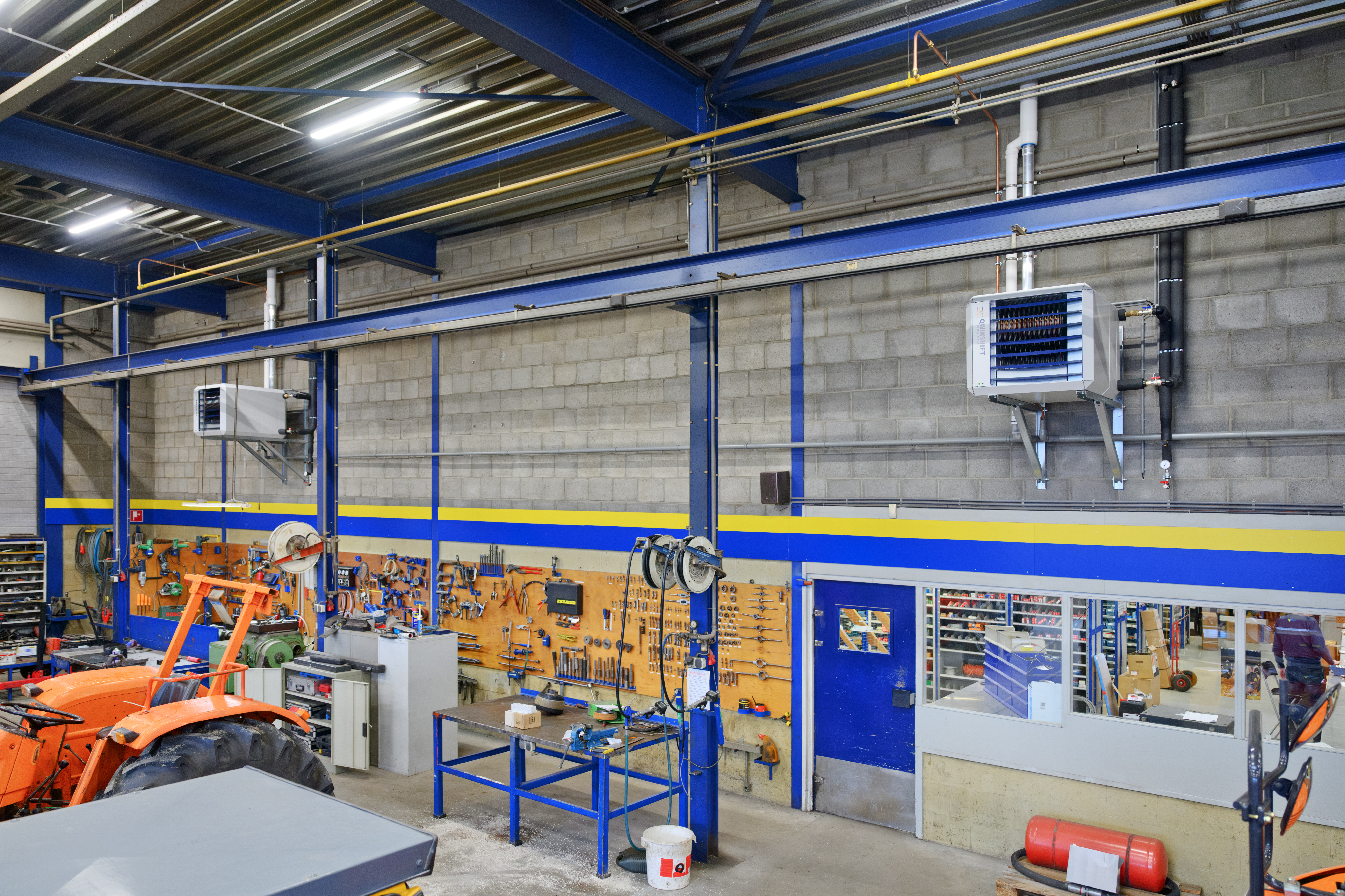 De Qwikshift QSG is een hybride luchtverwarmer bestaande uit een warmtepomp, een gasgestookte booster en een slimme regeling.