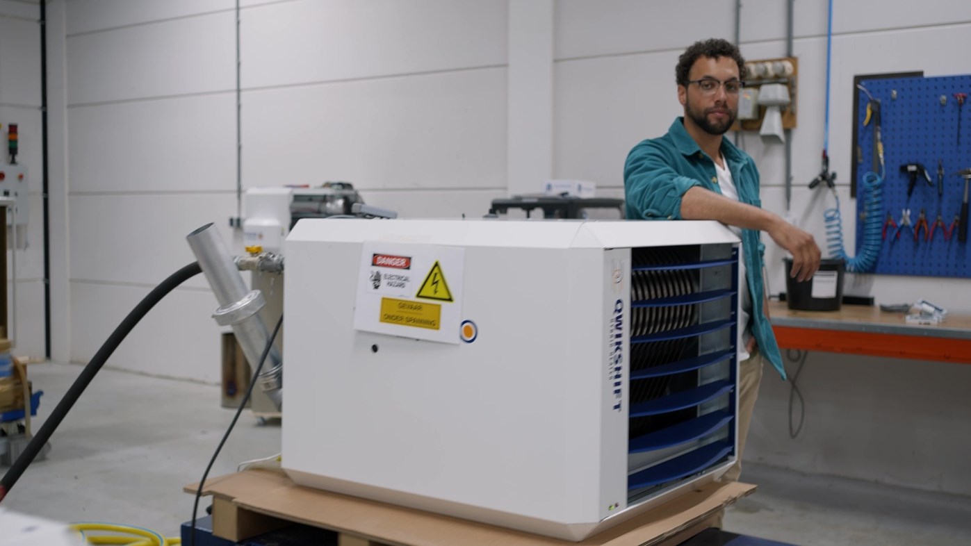 'Voor het verwarmen van gebouwen wordt steeds vaker gekozen voor (hybride) warmtepompen. Maar we hebben de maximale capaciteit lang niet altijd nodig en grote warmtepompen zijn een flinke investering. Daar heeft Winterwarm een oplossing voor bedacht met de Qwikshift hybride warmtepomp. Hiermee kun je met één systeem verwarmen en koelen.'