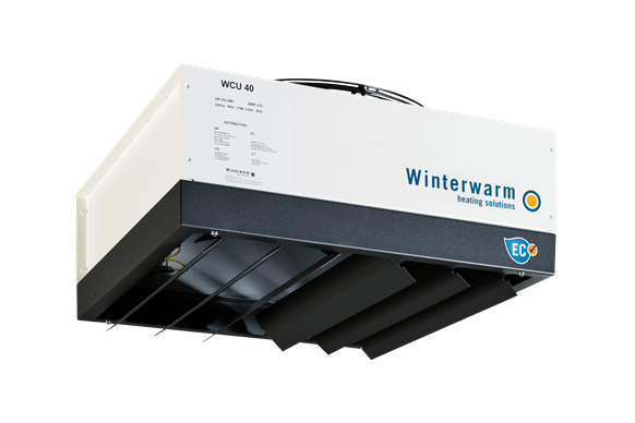 De WCU-EC 40 is een compacte circulatie unit bestaande uit een vierkante metalen omkasting met uitblaasrooster en een ventilator erboven welke geschikt is voor hallen tot 8 m. hoog. De WCU is daarom ook heel geschikt om boven gangpaden in magazijnen te plaatsen.
