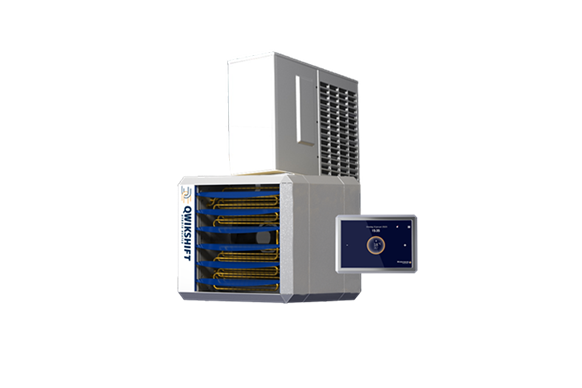 De Qwikshift QSE is een all-electric hybride luchtverwarmer waarbij een warmtepomp is gecombineerd met een innovatieve booster en slimme regeling.