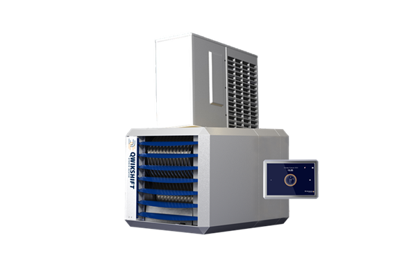De Qwikshift QSG is een hybride luchtverwarmer bestaande uit een warmtepomp, een gasgestookte booster en een slimme regeling.