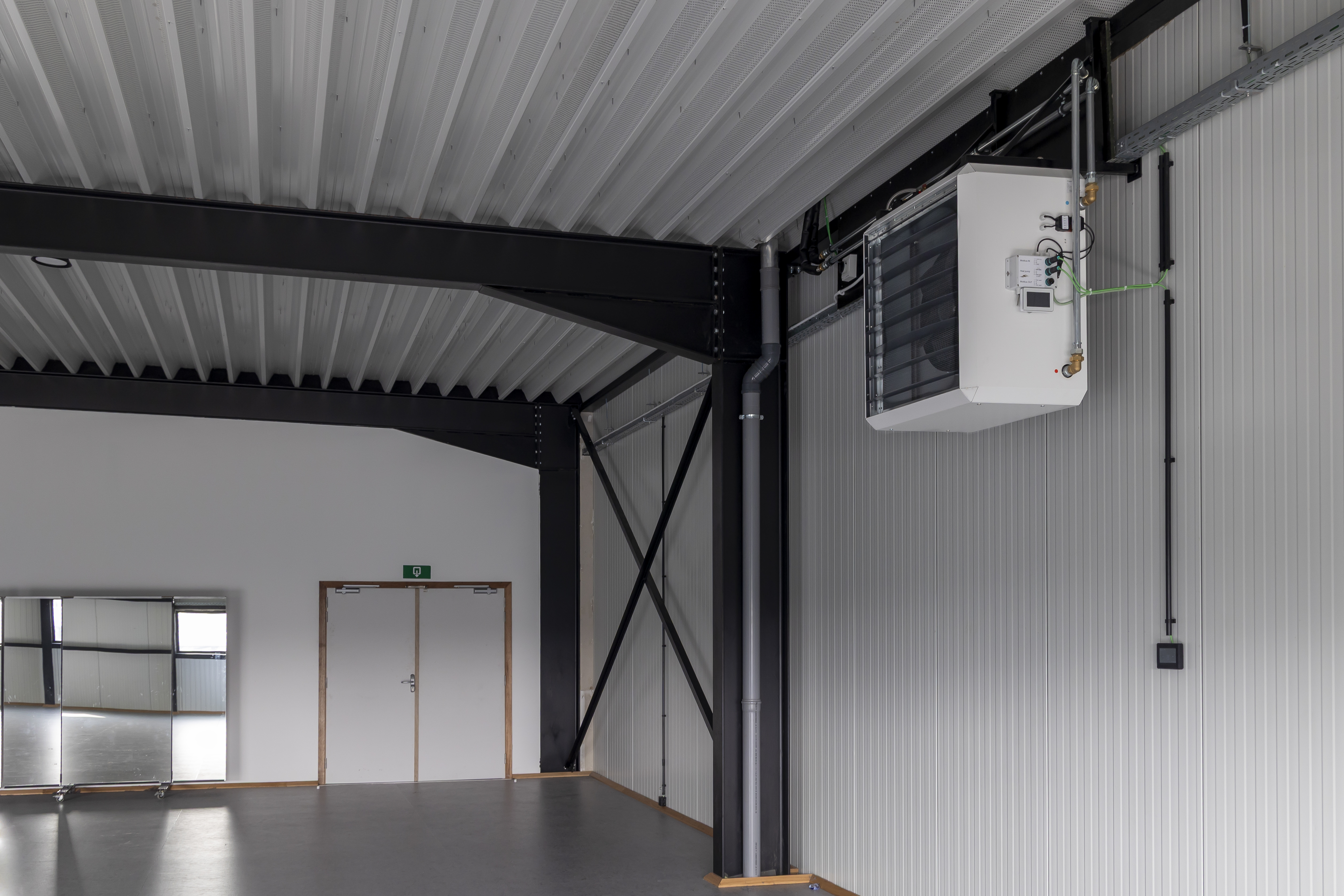 Voor het project werd gekozen voor een combinatie van de WWH-LT luchtverwarmer en de HPX warmtepomp. Deze installatie verwarmt de danszalen efficiënt en kan in de zomer ook koelen.