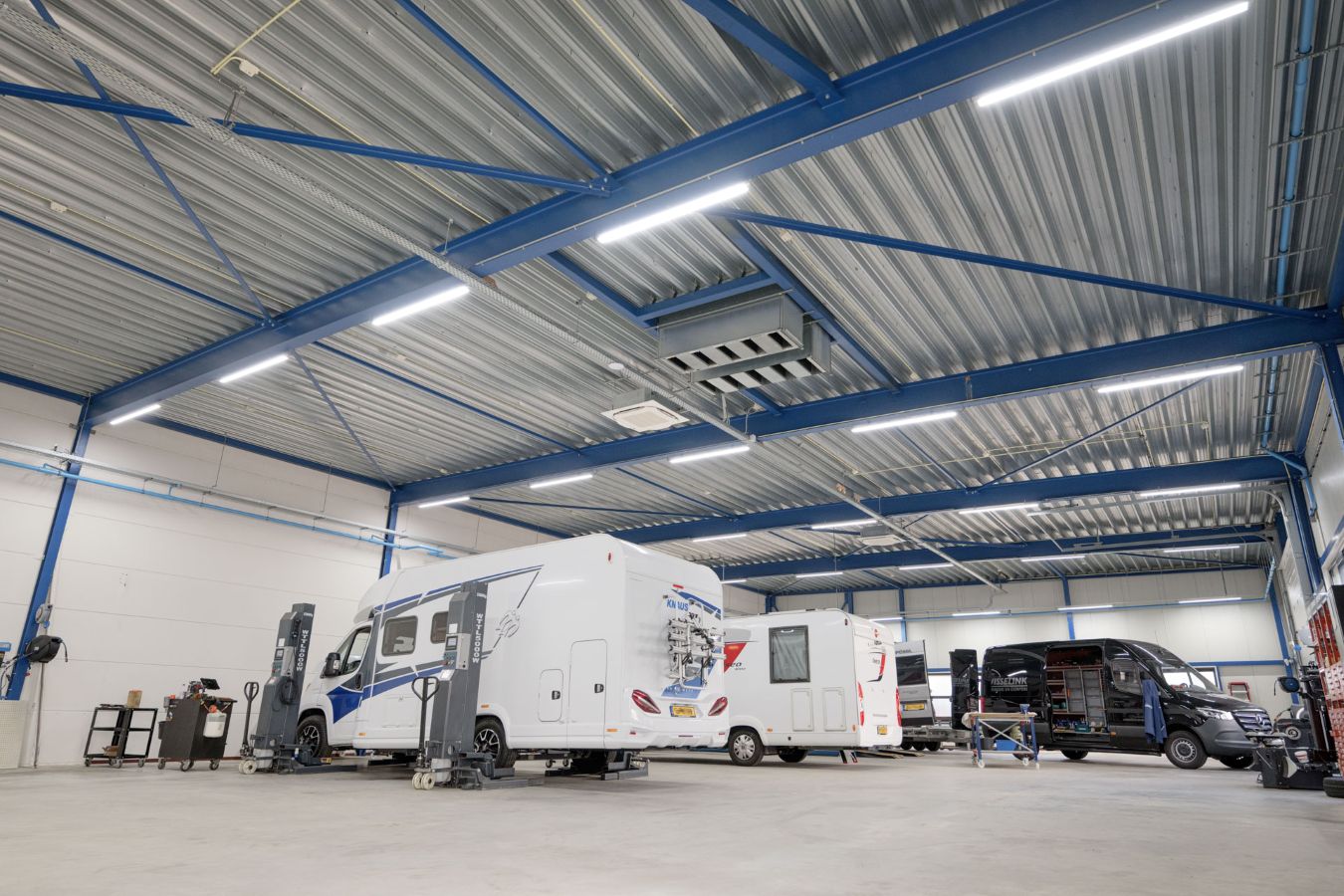 De monteurs van Wisselink zijn breed opgeleid. Voor het onderhoud van campers en caravans is een breed scala aan kennis en vaardigheden nodig, waaronder elektrotechniek. Dankzij deze expertise konden zij ook de installatie van de nieuwe verlichting volledig zelf uitvoeren. Door de plaatsing van de armaturen aan weerszijden van elke werkplek ontstaat een optimaal en gelijkmatig lichtbeeld; ideaal voor precisiewerk.