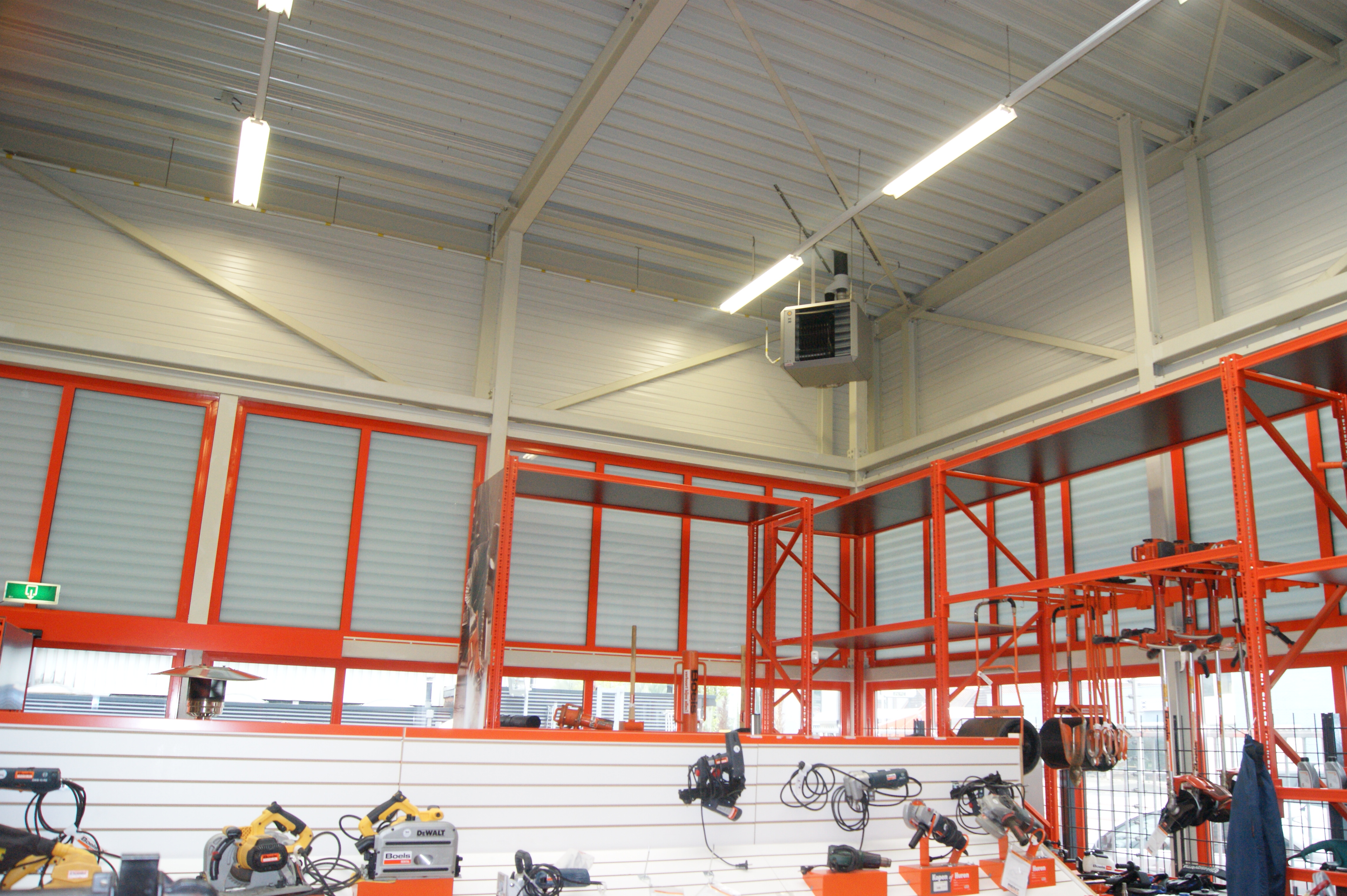 - Hoge stellingen verhinderen een goede verdeling van de warmte in het magazijn, dus let op de plaatsing van de luchtverwarmers.